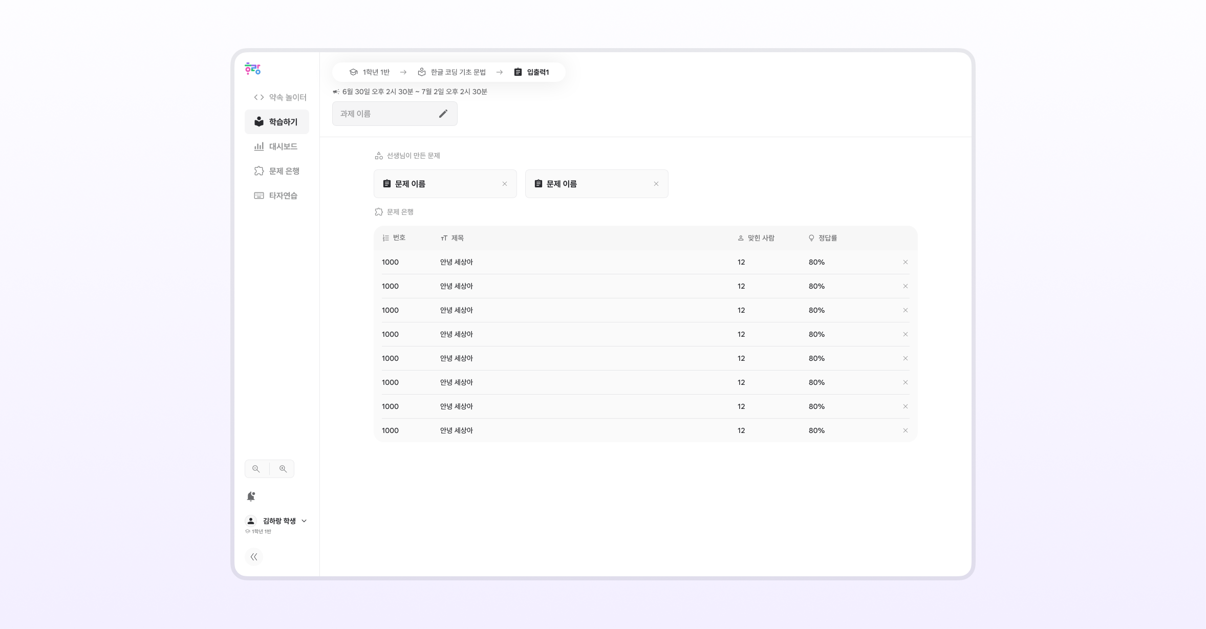 문제 은행에서 선택된 문제가 과제로 나올 수 있어요.