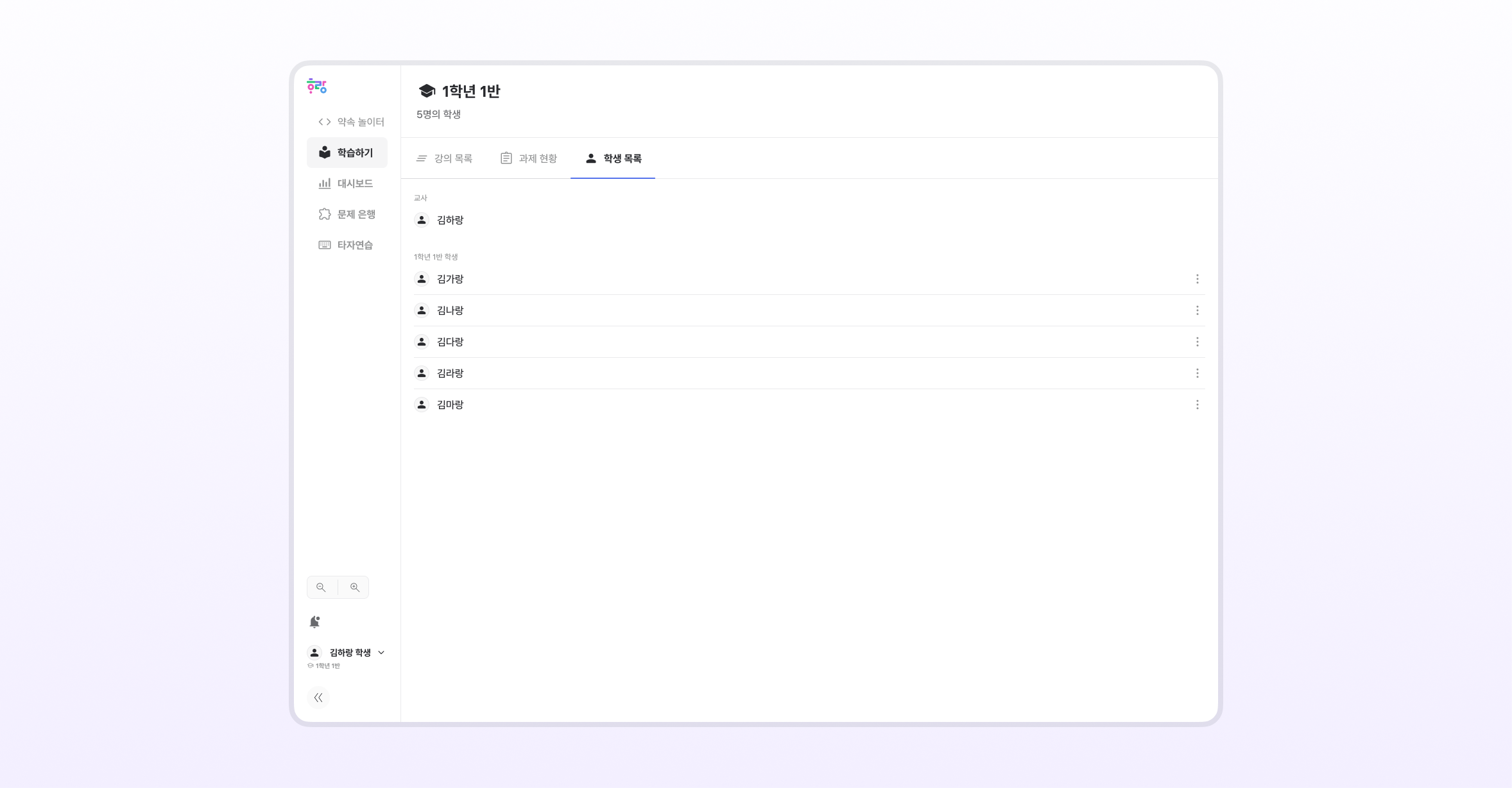 나와 같은 교실에서 수업을 듣는 친구들을 볼 수 있어요.