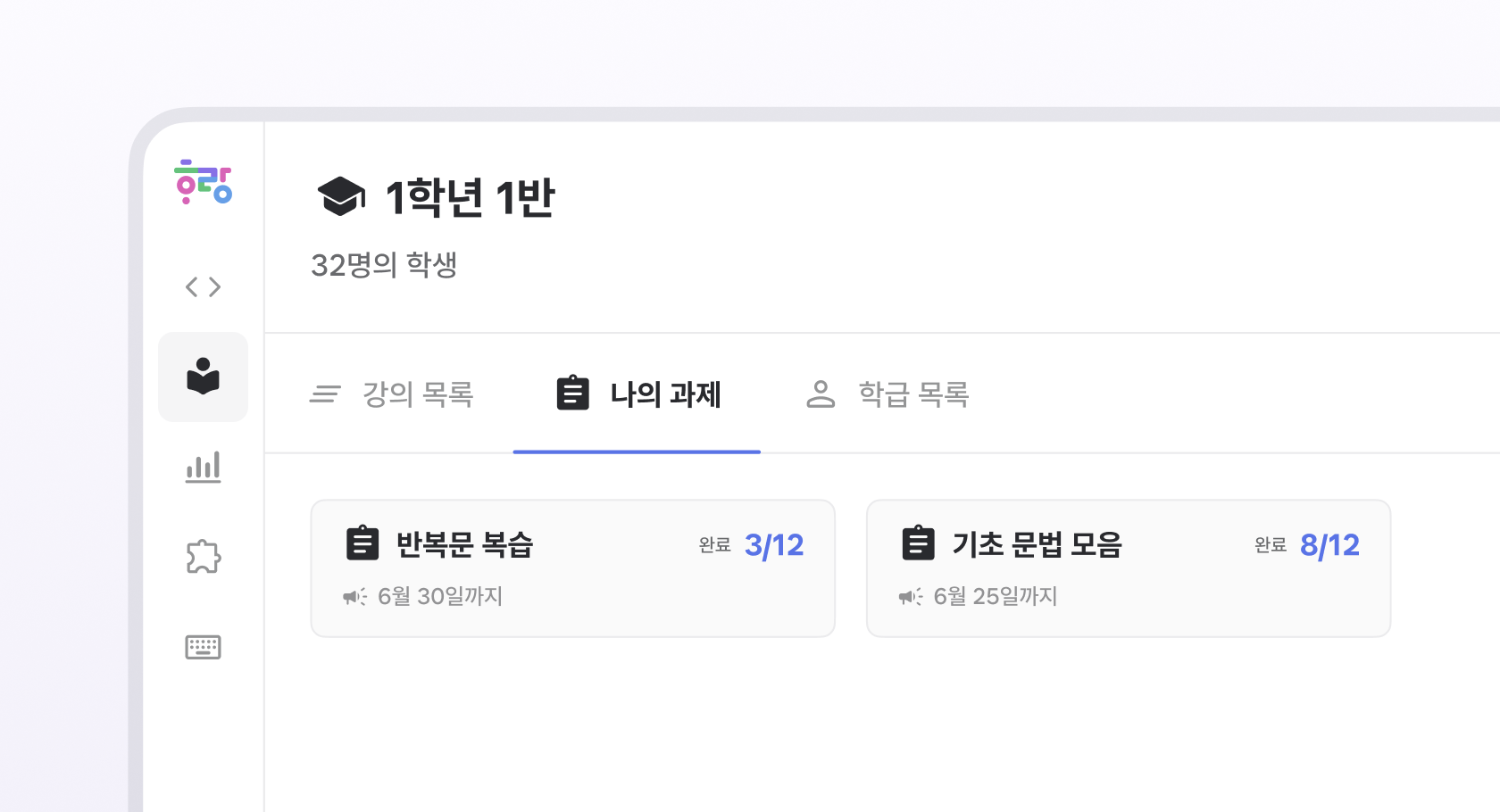 교실에서 진행 중인 과제를 확인할 수 있어요.