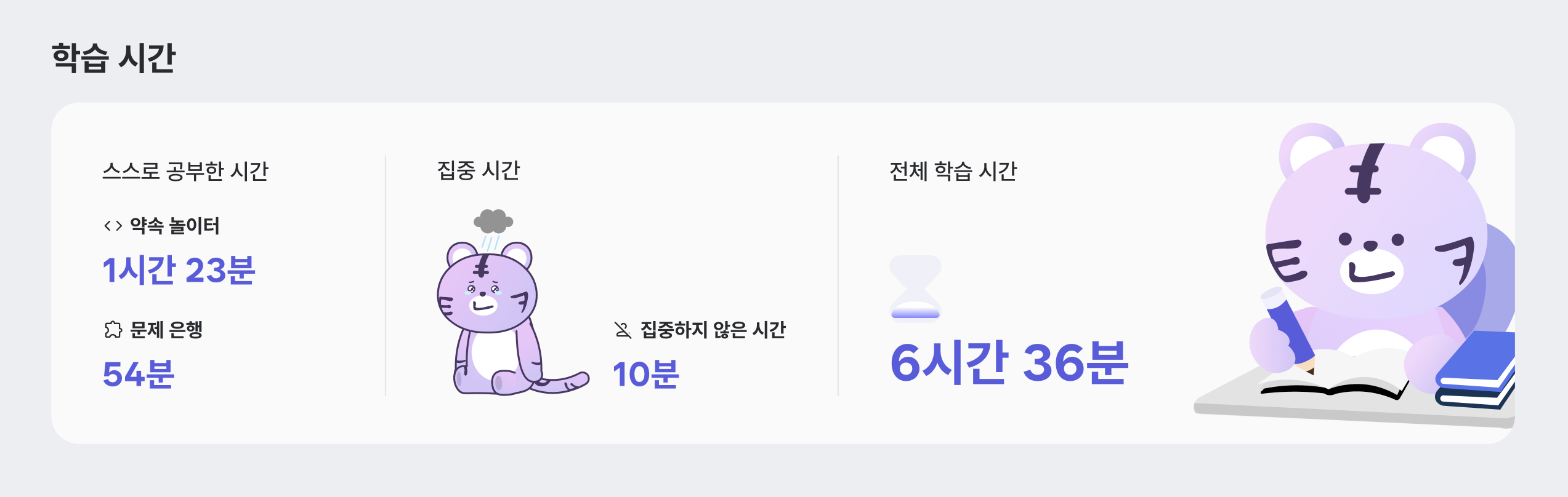 나의 학습 시간을 활동별로 확인할 수 있어요.