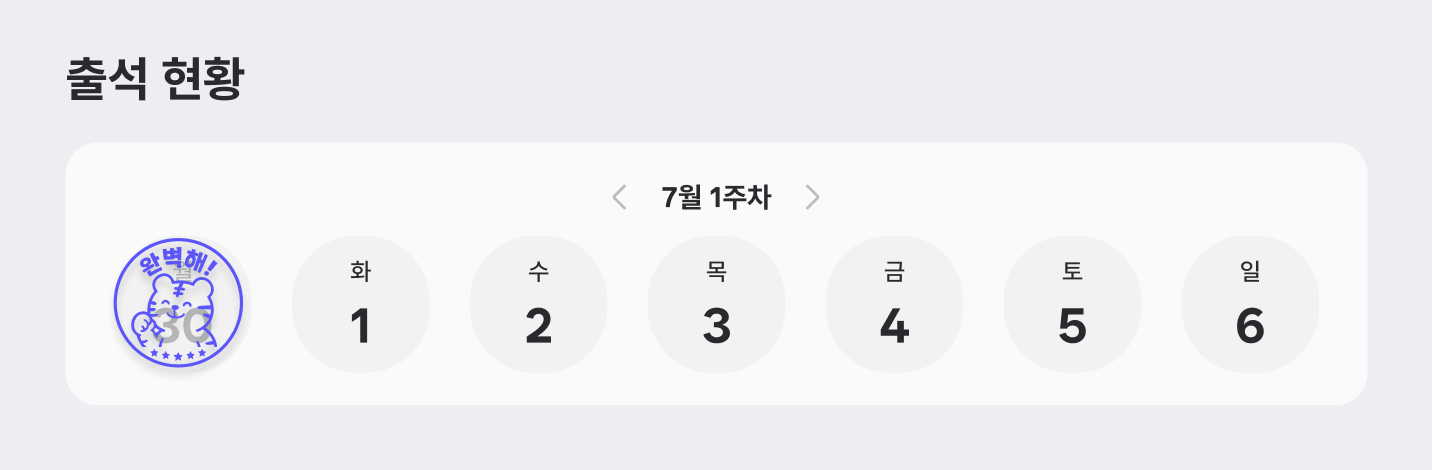 주차별 출석 현황을 확인할 수 있어요.