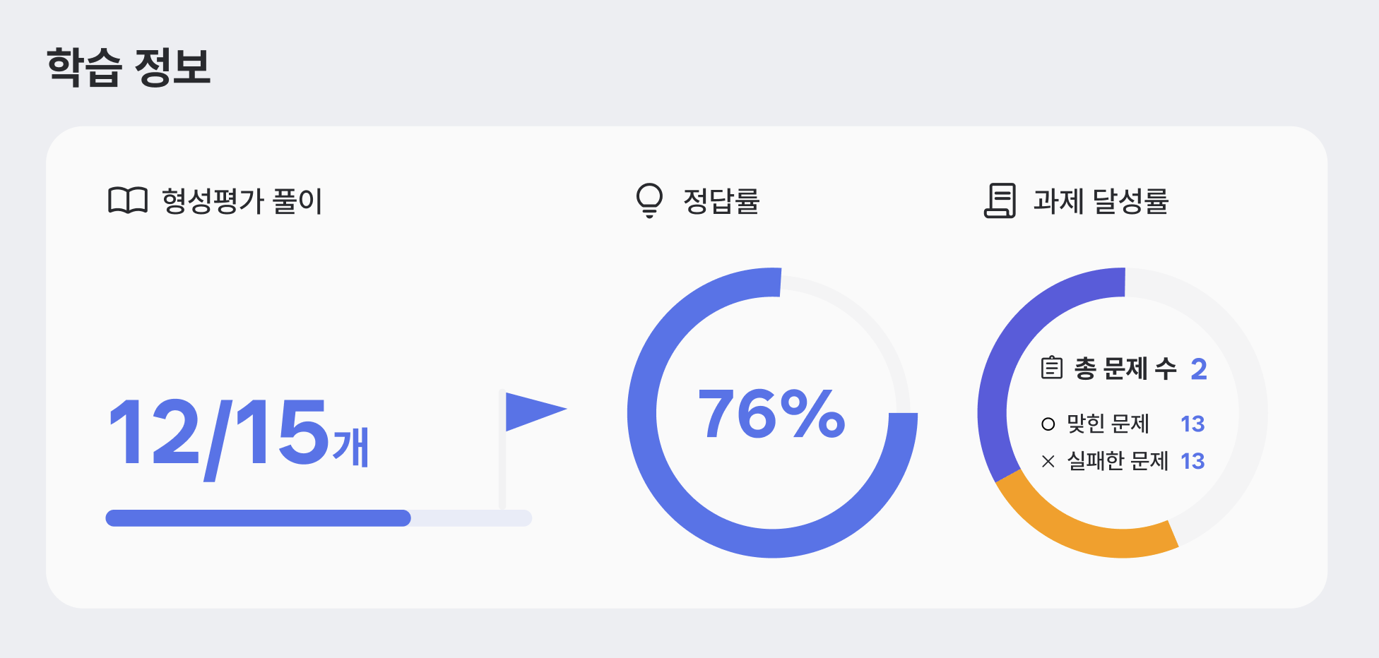 과제 진행 상황과 성취도도 함께 확인할 수 있어요!