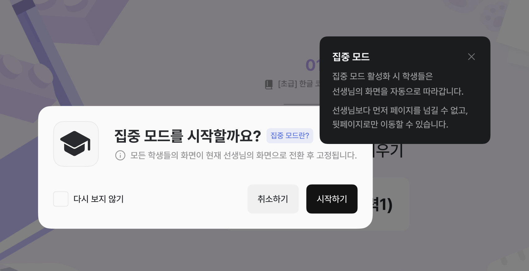 수업 종료 후에는 학생이 다시 자유롭게 페이지를 이동할 수 있어요.