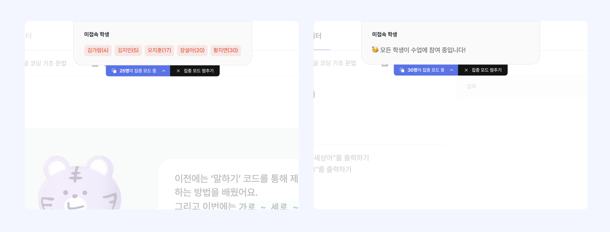 수업 흐름을 유지하면서 불필요한 화면 이동을 막을 수 있어요.