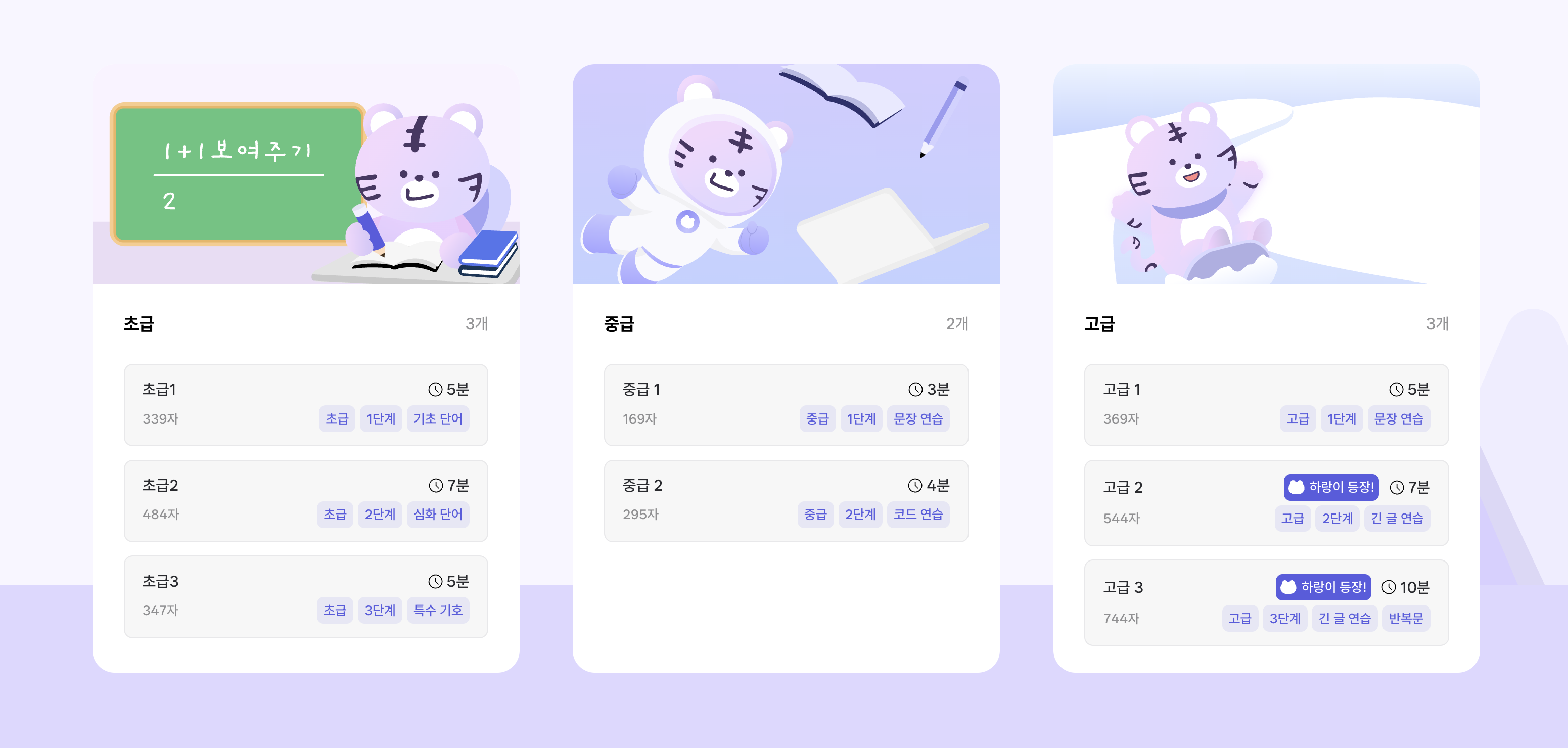 초급부터 차근차근 진행하거나, 부족한 단계만 골라서 연습해도 돼요.