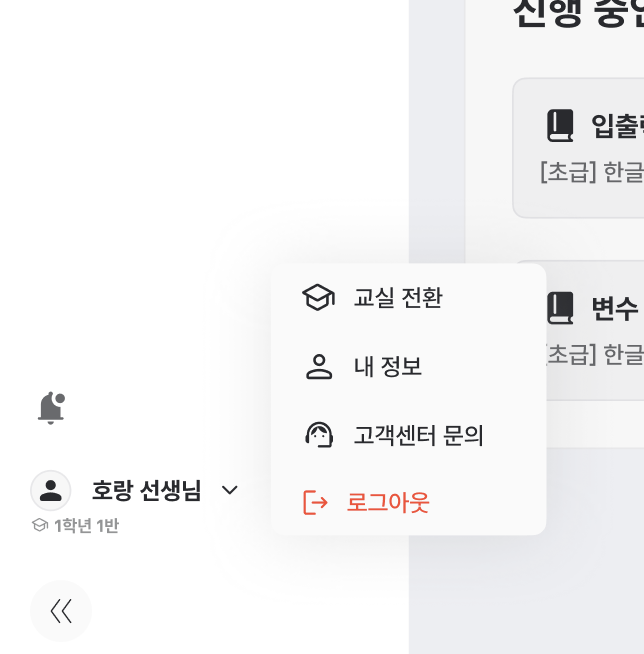 교실을 전환하면 해당 교실의 강의와 학습 정보가 표시돼요.